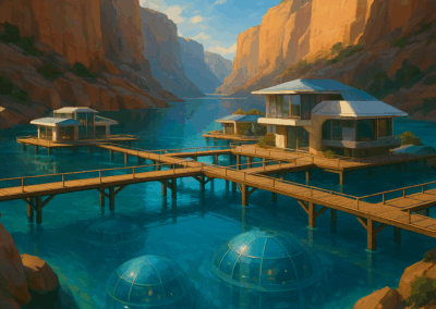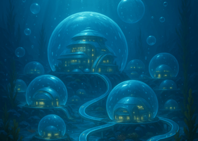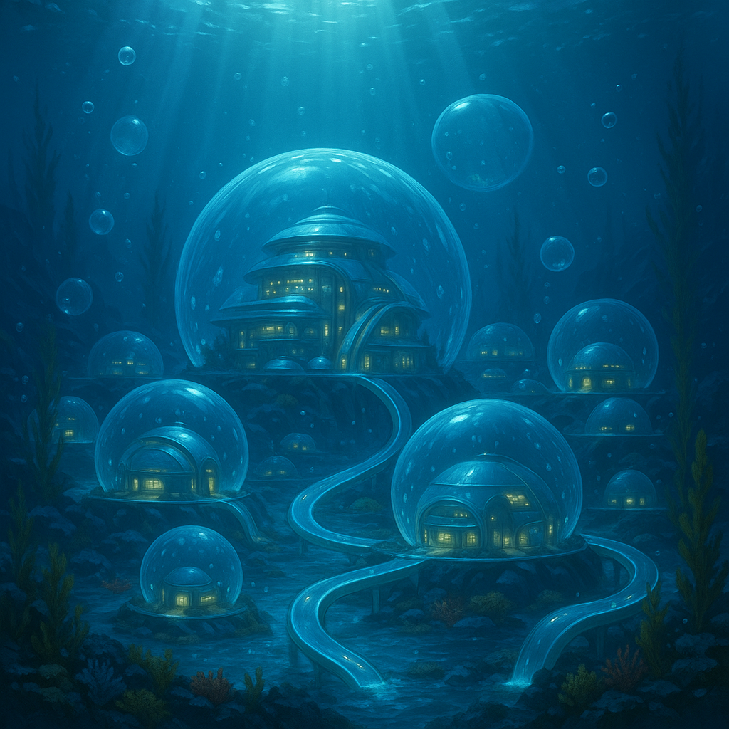 Beneath the waves lies Oceania, a shimmering bubble city connected by glass halls and glowing reefs. A tranquil yet treacherous kingdom, it thrives in beauty but is forever shadowed by the mutated sea beasts surrounding it.